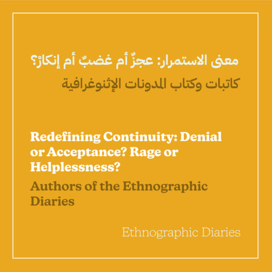 ويعكس هذا المشروع أهميّة الإثنوغرافيا في عصرنا الحالي كأسلوب كتابة ومنهجيّة تمكّننا من تحليل التحوّلات المعرفيّة بشكل أفضل والتنبّؤ بمستقبل أفضل، خصوصًا في فترات الأزمات وانعدام اليقين. كما يتيح لنا التعاون مع مجلة بيروت الأدبيّة والفنيّة إمكانيّة إقامة روابط مع جمهور من غير الباحثين والباحثات في العلوم الاجتماعيّة. في الواقع، تتطلب الأوقات التي نعيشها عقد محادثاتٍ ونقاشاتٍ تكسر الحواجز، وكلّنا أمل بأن تشكّل هذه المنشورة خطوةً في هذا الاتجاه.