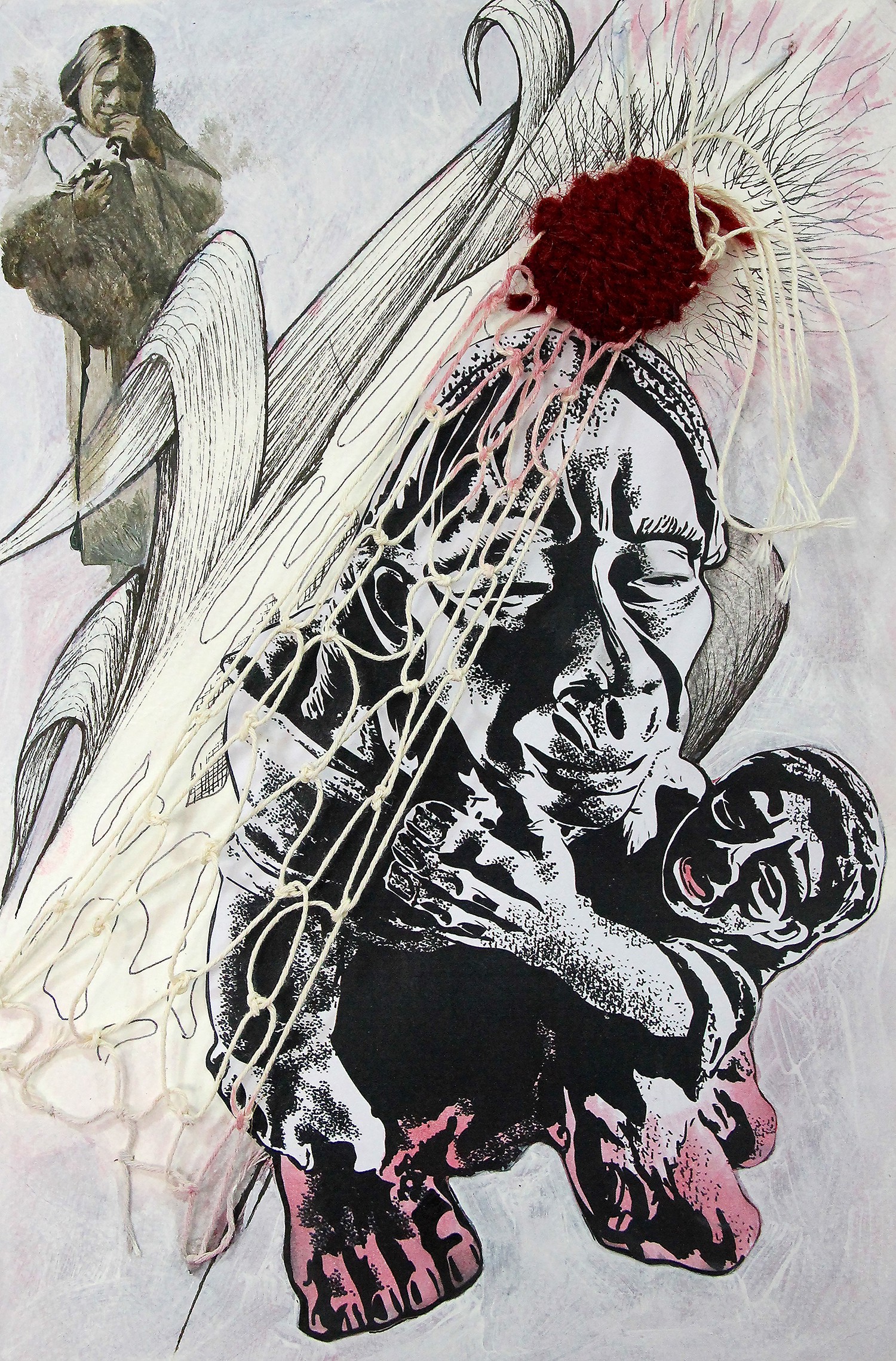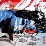 Airmail Project comprises of 16 artists in 16 countries collaborating by post. Each artist started a piece of work, sent it to a second artist to work on, who sent it to a third artist to finish. Each artist participated in three pieces of work. After shows in Los Angeles and Beirut, the work is now showing in London.